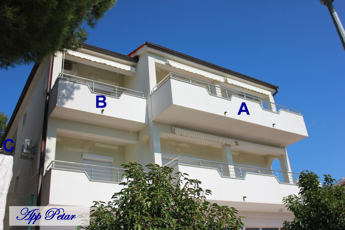 Apartman se sastoji od: 1 spavaća soba (bračni krevet), kuhinja, dnevni boravak (kauč na razvlačenje za 2 osobe), kupaonica s tušom, 2 balkona (pogled na more).