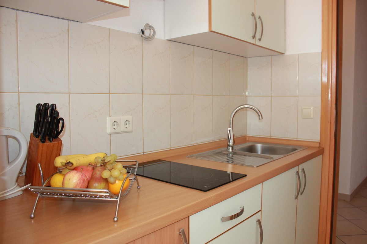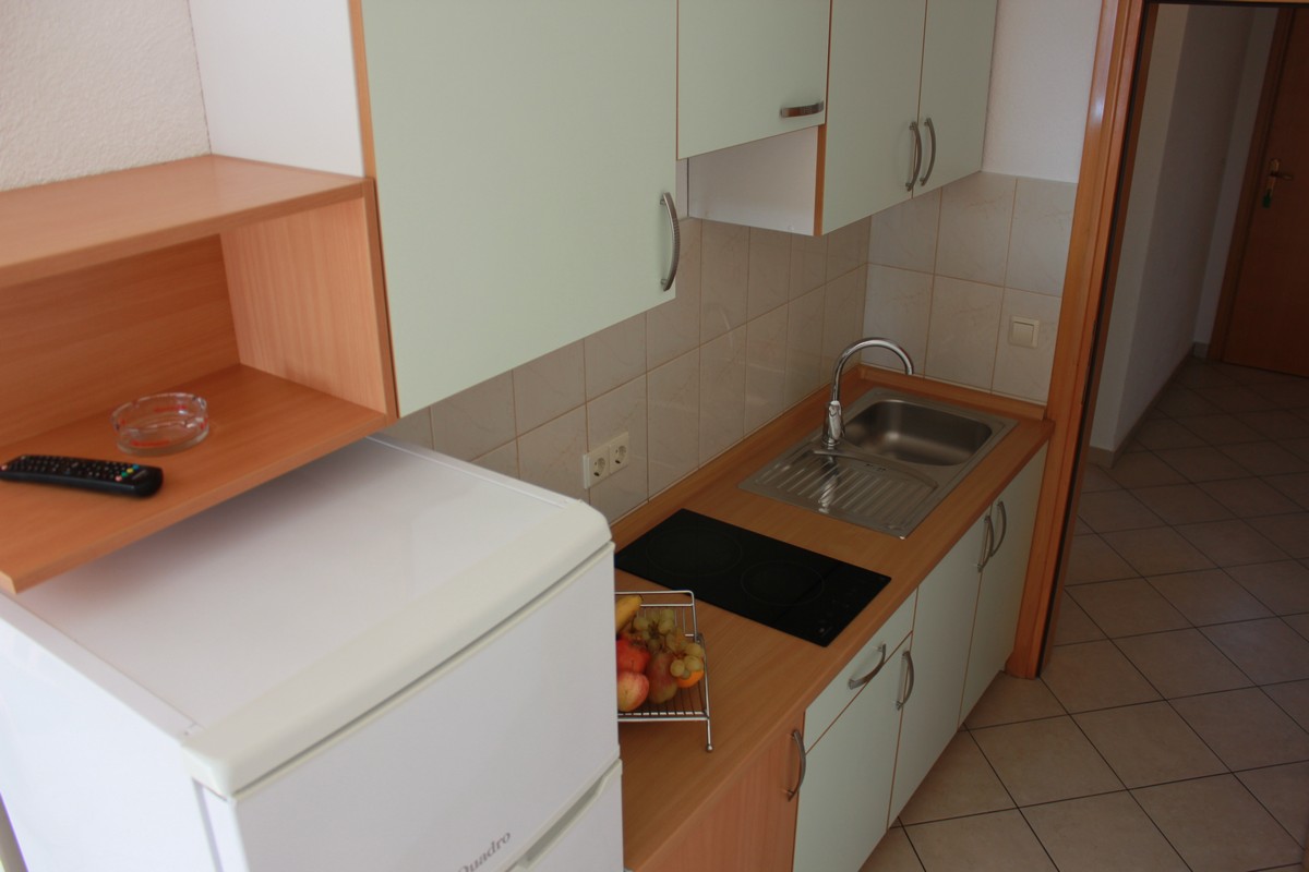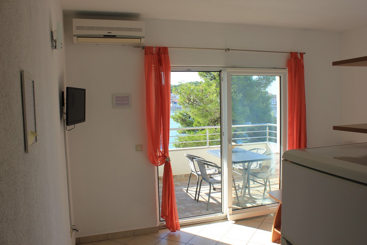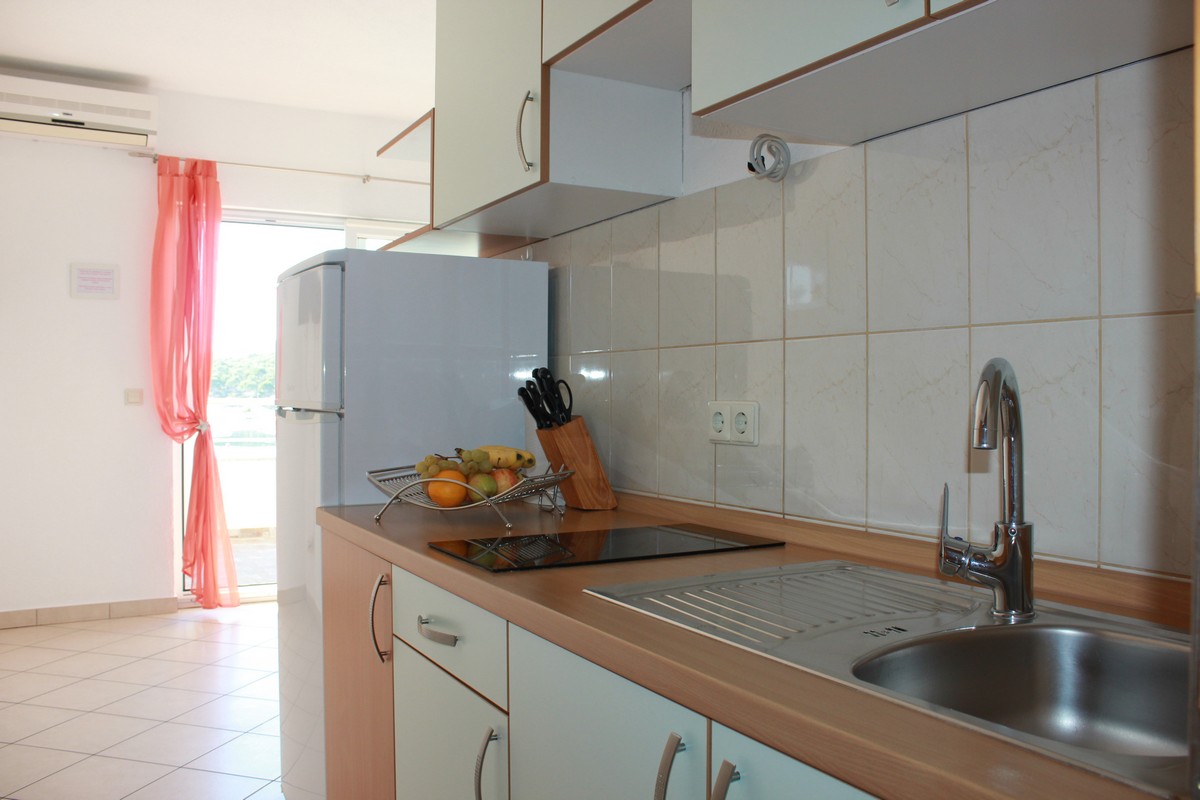 Apartman se sastoji od: 2 spavaće sobe (bračni kreveti), kuhinja, dnevni boravak, kupaonica s tušom, terasa 7m2 (prekrasan pogled na more).